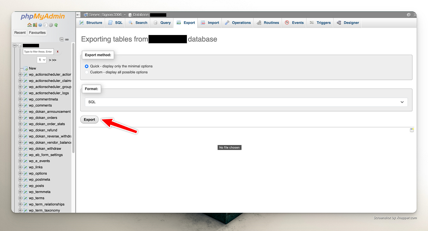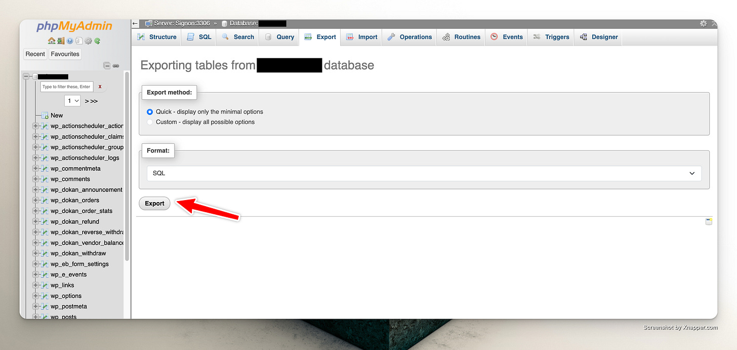 4) Export Database from Source Site