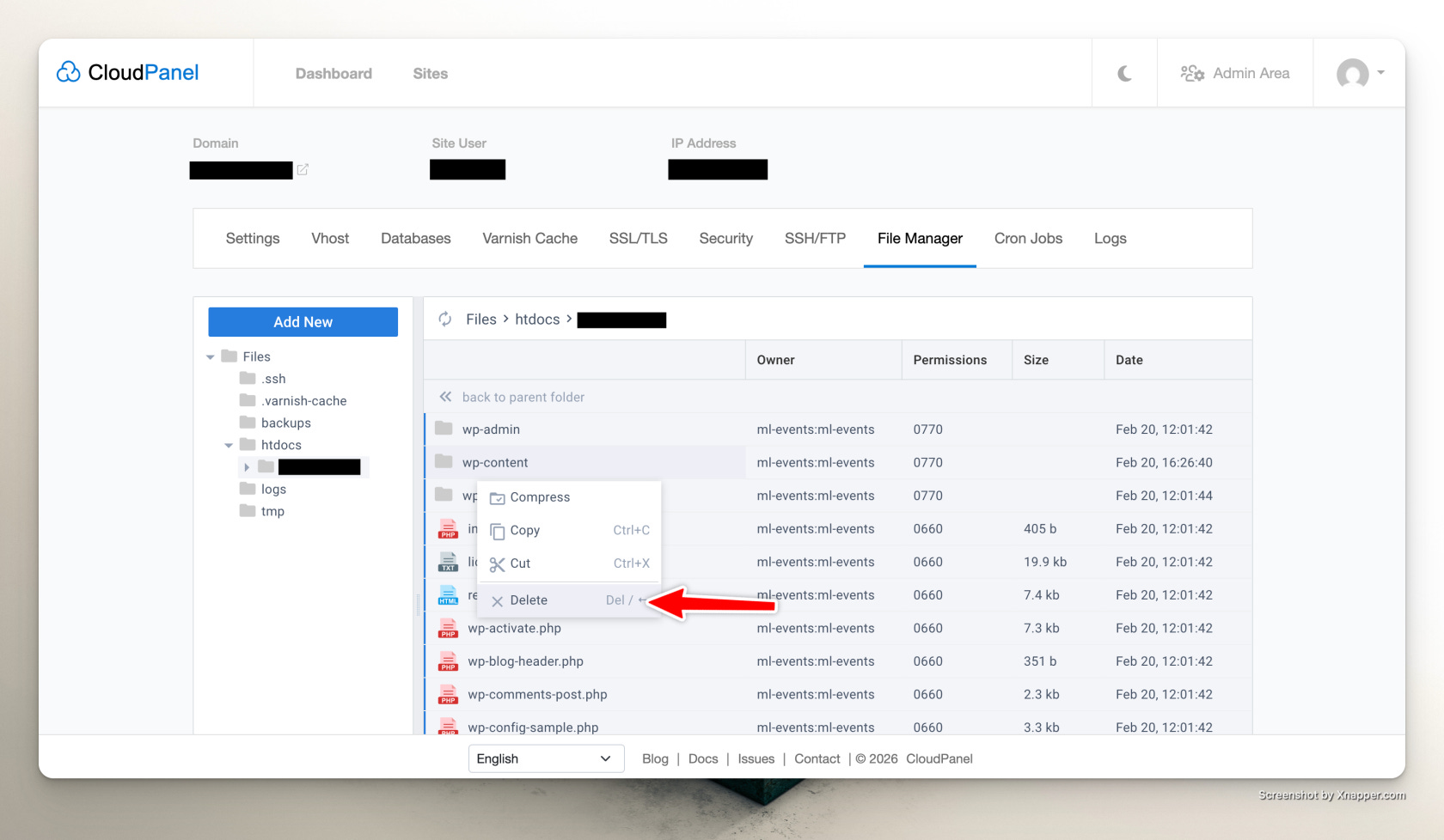 In CloudPanel, go to: